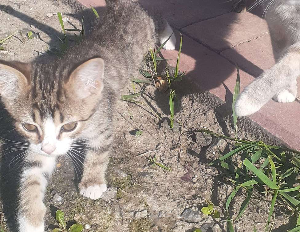 Две девочки, одна серо-рыжая, вторая серая. Ласковые, игривые. Кушают все, к лотку приучены.