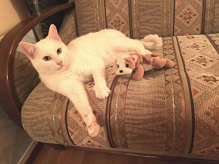 Дружелюбие кошки распространяется даже на собак. В общении с другими четвероногими она старается показать свое превосходство, может приревновать, но никогда не будет проявлять открытую агрессию.