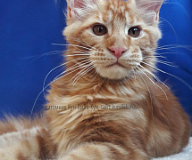 Котенок мейн-кун в отличном качестве, крупный, мощный, очень яркий красный окрас, такой насыщенный окрас бывает очень редко. Родители крупные, очень красивые и с отличными породными качествами. Больше информации в личку.