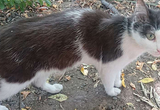 Пропал 12.10.23 г. котейка, черно-белый, острые ушки, белая мордочка,кличка-Остроушек.