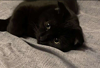 Черный, котик по кличкe Симба! Ему 1 год, 2 мeс. Очень ласковый ,к лотку приучен ,кушает всё