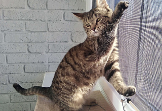 В конце августа подобрала котенка в очень опасном месте. Рядом ни подвалов, ни других кошек. Совершенно один жил под капотами и на колесах машин. Был совсем мелкий, на коротких лапках. На карантине сидел три недели в комнате, с первого дня сам пошел в лоток. Сейчас котенку приблизительно 3,5 мес, социализировался, подружился с кошкой, большой игрунчик, мягкая шерстка, как шелк. Отдаю в ответственные руки, привезу сама