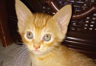 Рыжий котёнок, очень любит играть как с другими животными так с детьми, бегает с мячиком. Кушает всё сам, к латку приучен. Мама мышеловка. Очень хочет попасть в хорошую семью, где бы его любили и с ним играли.