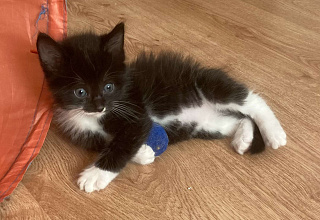 Милый черно-белый котенок