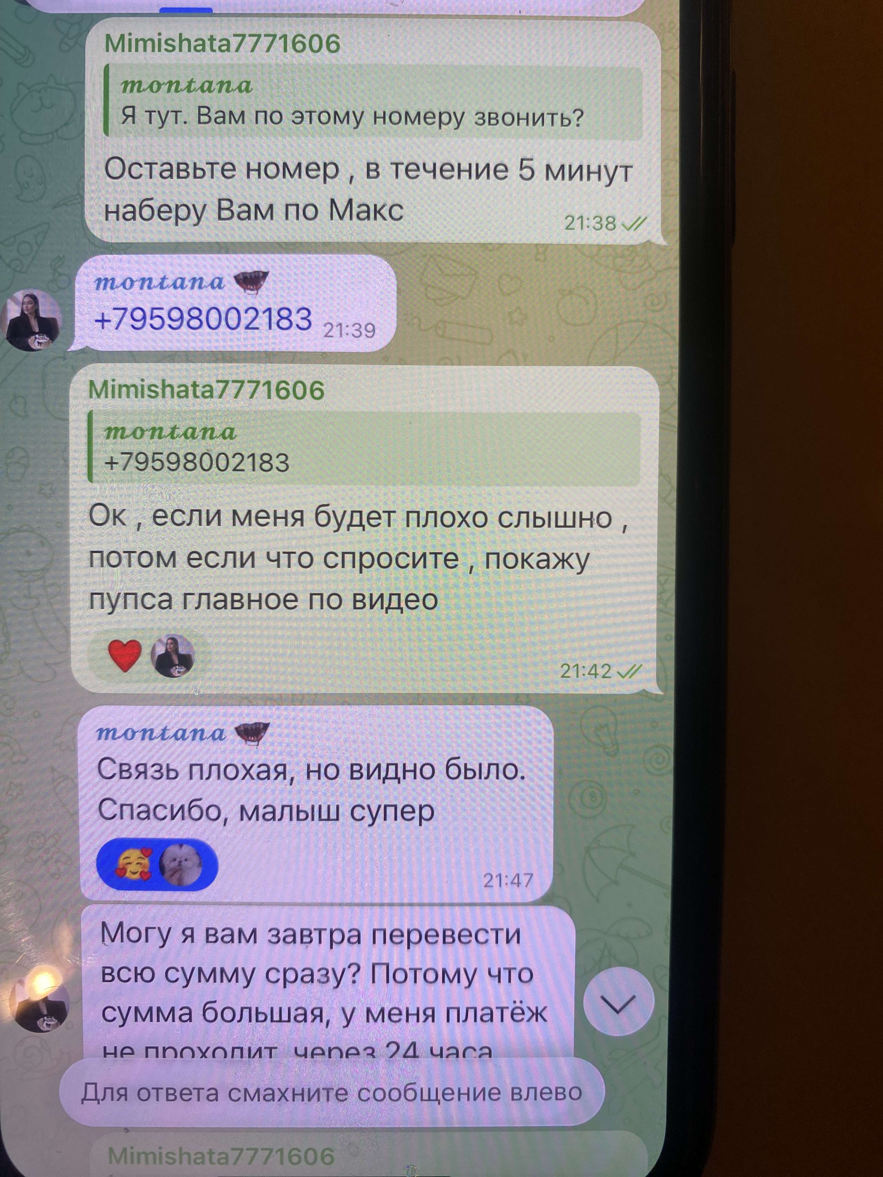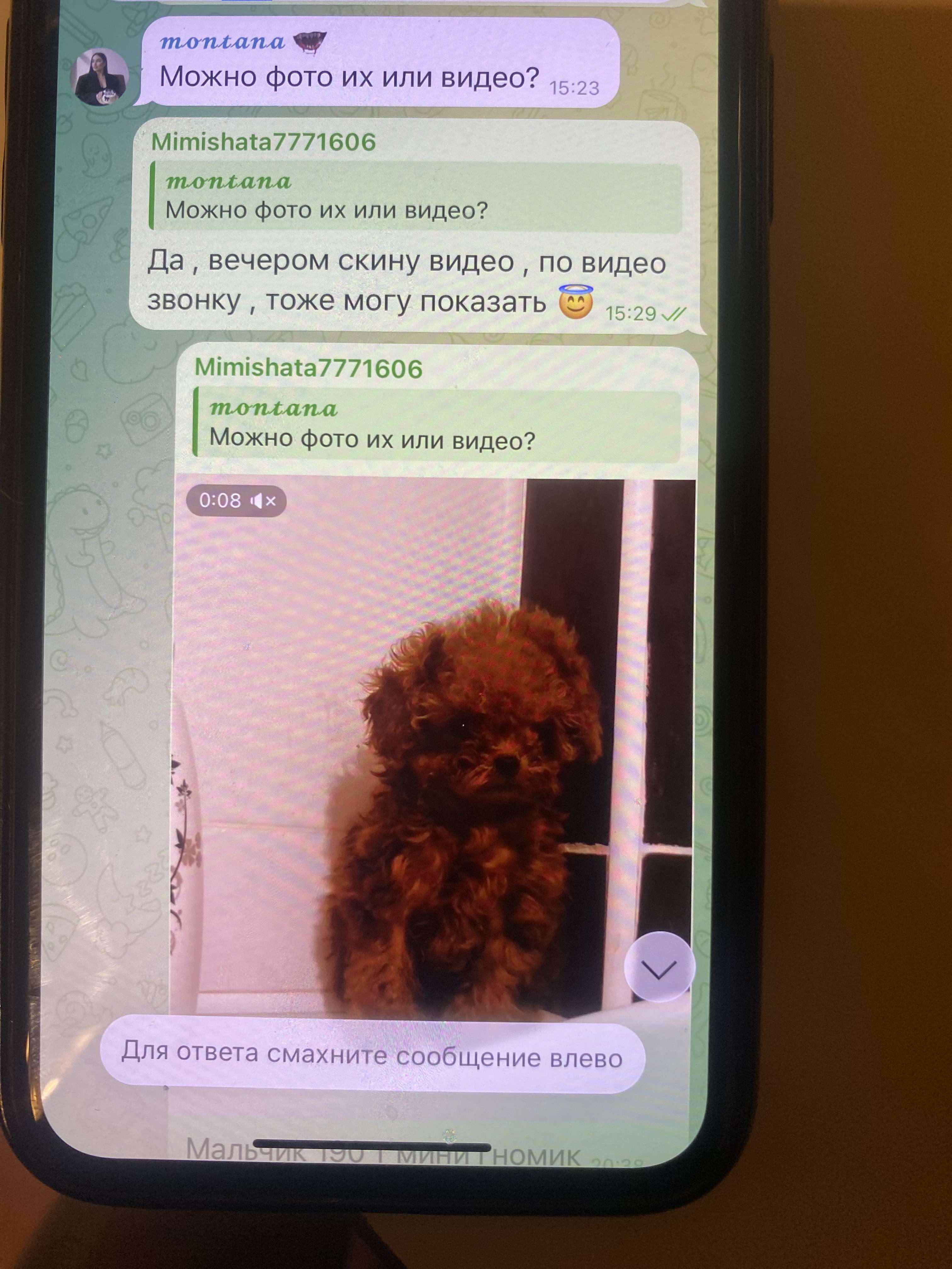 Комментарии: Будьте осторожны , мы уже готовим жалобу в полицию о клевете по 128 ст и по 158 мошенничество , человек пишет в мессенджеры ( переписка имеется ) просит видео щенка и видео звонок , мы показали и видео и видео звонок , после спрашивает о доставке , спрашивает личную информацию для денежного перевода … в итоге пишет негативные отзывы и по отзыву выше … многократно человек клевещет на людей … тем ... Развернуть Будьте осторожны , мы уже готовим жалобу в полицию о клевете по 128 ст и по 158 мошенничество , человек пишет в мессенджеры ( переписка имеется ) просит видео щенка и видео звонок , мы показали и видео и видео звонок , после спрашивает о доставке , спрашивает личную информацию для денежного перевода … в итоге пишет негативные отзывы и по отзыву выше … многократно человек клевещет на людей … тем самым нарушает законы РФ Свернуть