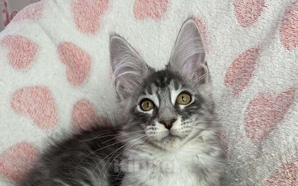 Продается черная серебристая мраморная девочка мейн кун Zlata. Приучена к лотку с древесным наполнителем. Ест сухой корм Роял Канин Бебикет. Цена указана без права разведения.