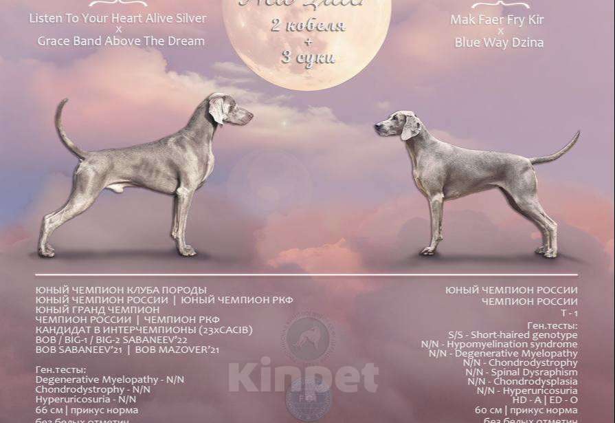 Вниманию любителям собак и особенно породы «Веймаранер»! У нас есть свободный щенок - девочка от прекрасной пары Рон&Рона. Крепкая, хорошего формата, с устойчивой психикой, перспективна для шоу, спорта и любых активных занятий. 📍Дата рождения 30 августа 2025 года. 🐶 📍Родители - одни из лучших представителей породы, перечень титулов представлен в презентации (фото в галерее). ❣️Отец и мать проверены по здоровью и не являются носителями генетических заболеваний. Результаты генетических тестов также в фото-презентации. 📍Загородное выращивание (Московская область, Новорижское направление): вольер в доме, чистый, теплый, ухоженный. Прогулки с месячного возраста по участку под присмотром, участок ухоженный, чистый. 🍲 Питание - натуральное, аллергии на пищевые продукты не выявлено 💉Прививки, обработки, номерной международный ветпаспорт, клеймо и метрика РКФ. Полностью готова к переезду в новый дом. ☎️ Поддержка заводчика и консультации по содержанию, воспитанию - пожизненно. ✅ Беру выпускников на передержку в приоритетном порядке. ✍️ На все вопросы подробно отвечу в сообщениях. Ссылки на родословные родителей - по запросу.