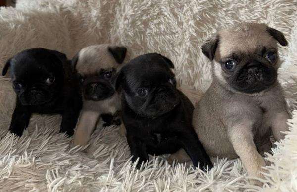 Оставить первый отзывСмышлёные и забавные бежевые и черные мопсики полутора месяцев отроду.
