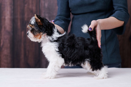Для чистки зубов следует приобрести специальную зубную пасту для собак и либо щетку-напальчник, либо детскую зубную щетку с мягкой щетиной. Уши и глаза лучше чистить ватными дисками, смоченными в специальных лосьонах.