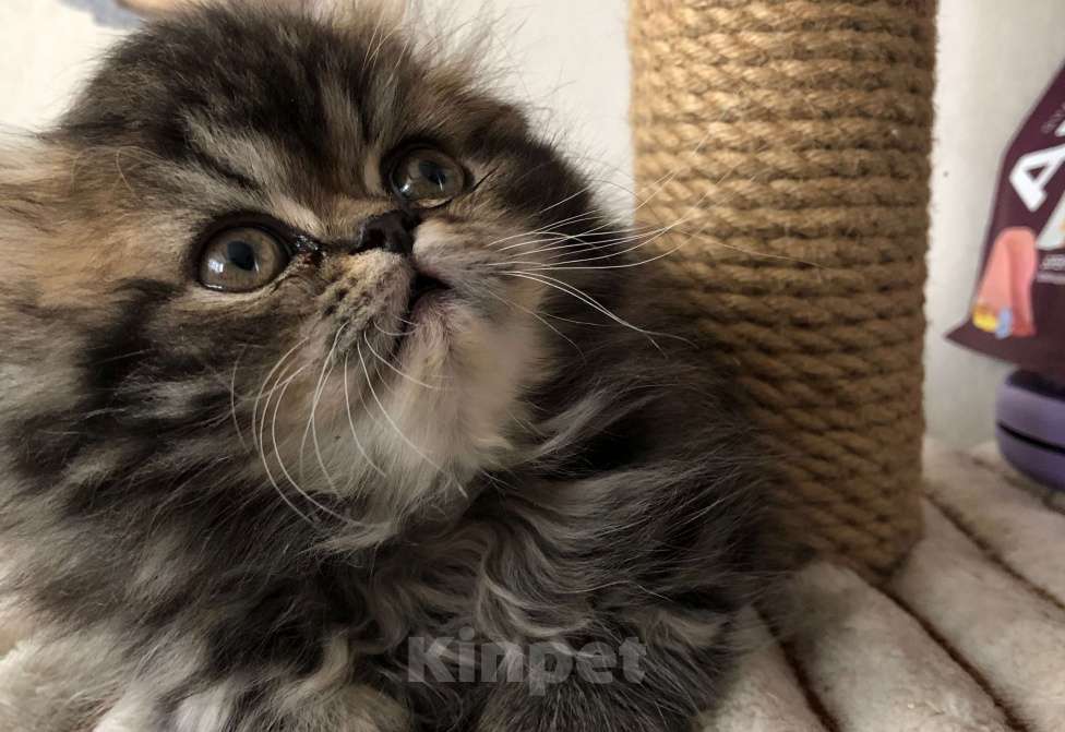 Оставить первый отзывПерсидская кошечка, окрас трехцветный, без ярко выраженных пятен. Мордочка бэбифейс, крупные лапки, маленькие ушки и достаточно короткий хвост. Прекрасно сложена, обладательница густой и длинной шерсти с кисточками на ушках. Большие глаза серо-зеленого цвета. Кошечка на отлично знает туалет, чистоплотна, после гигиены не боится, когда сушат её шерсть феном. Игрива, любит покушать, красиво и громко мурлыкает.