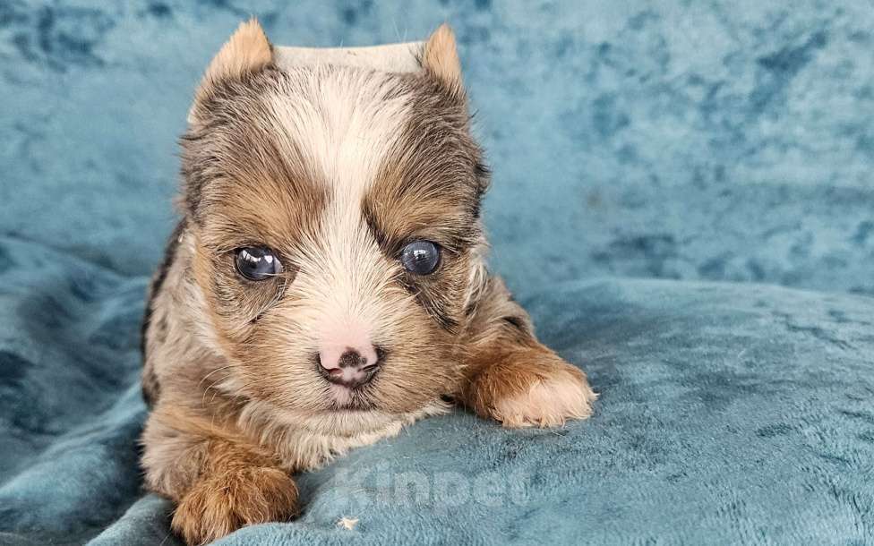 Питомник ЙоркПарадайз предлагает щенка цветного йорка в окрасе блю мерле с голубыми глазами, мальчик, он га фото, 1,5 месяцв, пока возможно бронирование. Мальчик стандартного размера, ожидаемый вес взрослого около 2,5 -3 кг