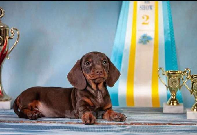 Щенки кроличьей гладкошерстной таксы 08.06.25 рождения. Два мальчика . Окрас кофейный с подпалом. Щенки привиты по возрасту. Документы и клеймо клуба РКФ.