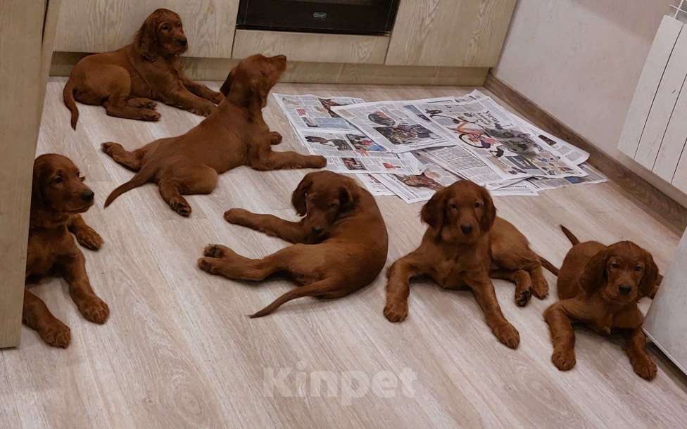 Предлагаю клубных щенков планового помета Ирландского красного сеттера. У всех малышей есть родословные и ветеринарные паспорта. Первую прививку сделали 18 апреля 2026 года. Щенки готовы к переезду сразу или можно их забронировать до второй вакцинации. На данный момент доступны как мальчики, так и девочки. Место нахождения щенков — Москва.