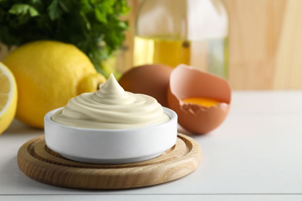 В состав классического майонеза входят рафинированное растительное масло, яичные желтки, горчица, уксус (или лимонный сок), сахар и соль. Несмотря на довольно высокую калорийность и жирность, этот соус имеет ряд полезных свойств для организма человека. При умеренном потреблении он улучшает усвоение жирорастворимых витаминов, (например, в составе овощного салата) укрепляет нервную систему и поддерживает здоровье кожи и волос. Главное – выбирать максимально натуральный продукт без вредных добавок или готовить его самостоятельно.