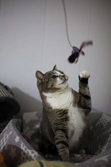 Менуэты в целом довольно игривы, и свою активность они сохраняют до старости. Но, если ваш кот вдруг стал лениться и мало двигаться, нужно его расшевелить. Для этого подойдут игрушки и, конечно же, хороший напарник по играм – то есть любимый хозяин.