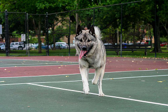 Кстати, о шалостях. Нужно понимать, что высокая энергия элкхаунда требует «расхода». Если питомец не утомится на прогулке, дома он заскучает и для развлечения устроит погром. Но сытая, уставшая и довольная собака никогда не станет портить имущество.