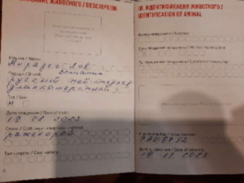 | Документы: | Ветеринарный паспорт, Договор обязателен, Договор по желанию, Клеймо, Прививки по возрасту |