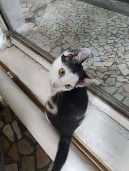 Персиково- белый мальчишка ищет дом.