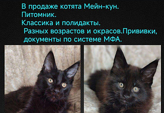 Продаются(резерв) котята породы Мейн кун. :f09f98bd::f09f98bb::f09f9295:Самая большая домашняя кошка в Мире. (домашняя рысь) Мальчики и девочки .С ДОКУМЕНТАМИ О ПРОИСХОЖДЕНИИ,ПРИВИВКАМИ ПО ВОЗРАСТУ. От выставочных родителей, чемпионов на выставках.:f09f9296::f09f918c::f09f918d: Крупные, тяжёлые , брутальные , с кисточками на ушках ласковые мурчалки ждут своих любящих мам пап. Помощь в доставке в регионы России.:f09f9a89::f09f9a80:✈️ Цена на каждого котенка индивидуальная ,зависит от типа, окраса и цели приобретения(в домашние любимцы под кастрацию или в разведение)Цены уточняйте пожалуйста. .Есть возможность приобретать корма и зоотовары со склада с персональной скидкой нашего питомника. С самовывозом или доставкой на дом. В объявлении цена указана на классику не в разведение.