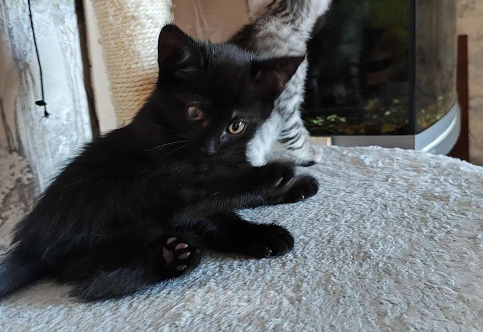 Оставить первый отзывОтдам в добрые руки котят от домашней кошки и домашнего кота. Родились 10.04.24 г. К лотку приучены. Хорошо ладят с детьми. Едят всё. Активные, крепкие и здоровые. Из пяти котят осталось двое. Чёрная "пантера" кошечка, светло-серый полосатый котик. Котята очень общительные и игривые! Котёнок в доме поднимет вам настроение, подарит тепло и ласку, обязательно станет любимым членом вашей семьи!